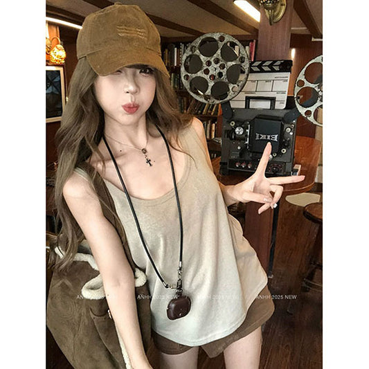 LF レトロ キュロット デニムスカート & タンクトップTシャツ カジュアル 大人可愛い