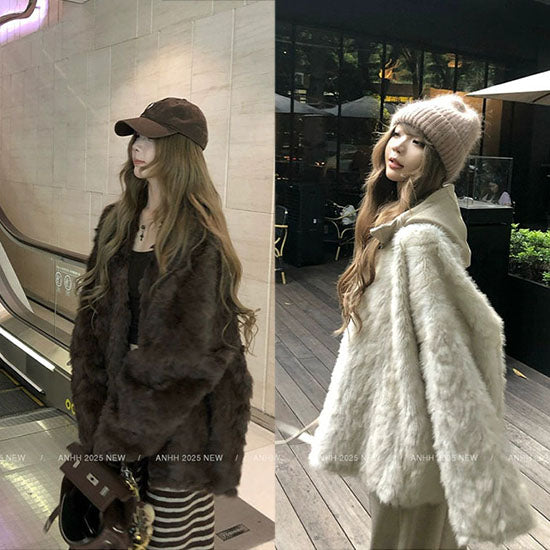 LF ふわふわ ホワイトファージャケット 大人可愛い ゆったり コート