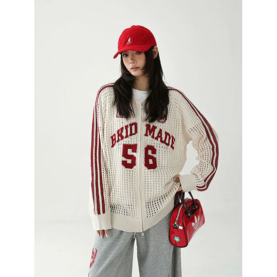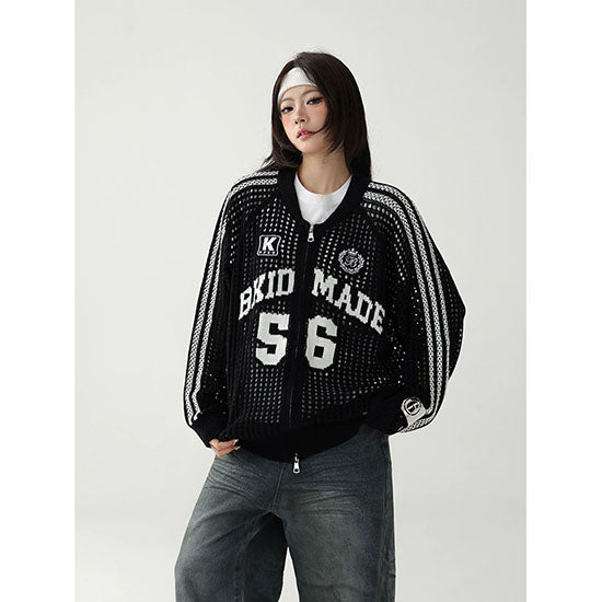 LF04 アメリカン レトロス ポーツ風 メッシュ透かしカーディガン 薄手コート