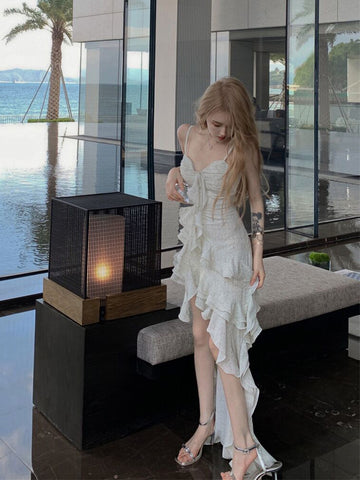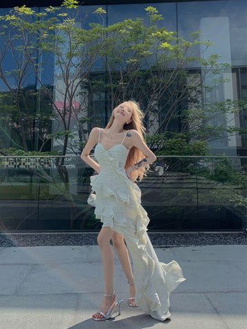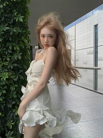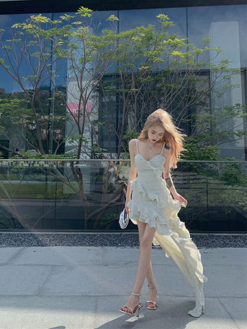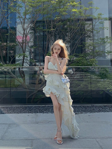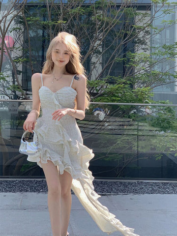 XYW 夏新作 ふりふり 不規則な裾 キャミワンピース オリジナルデザイン ギャル