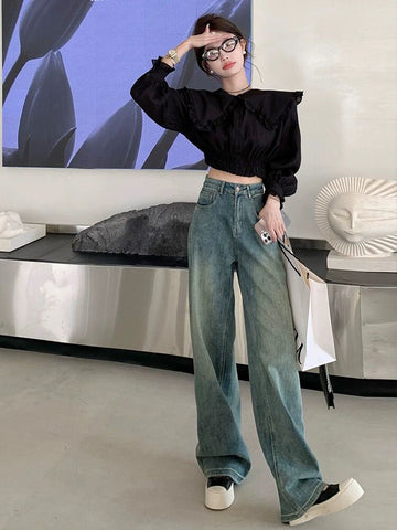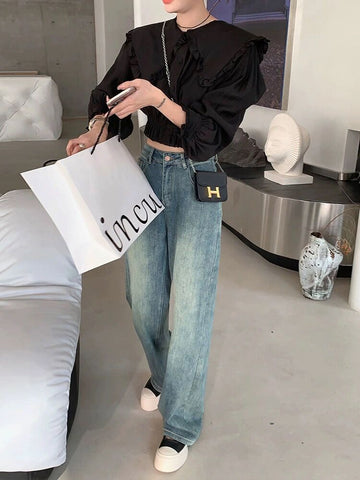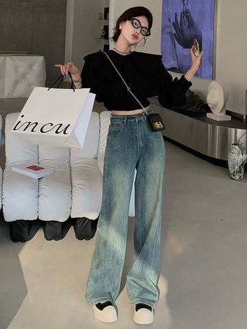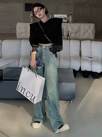 XYW 2023新作 ハイウエスト ジーンズ ストレートパンツ 通常版/延長版 着やせ かっこかわいい