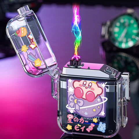 YQQ キャラクター USB充電 電子ライター 軽量 LED 防風 防水 電気ライター アウトドア キャンプ 登山 防災 地震対策 停電時などに適用