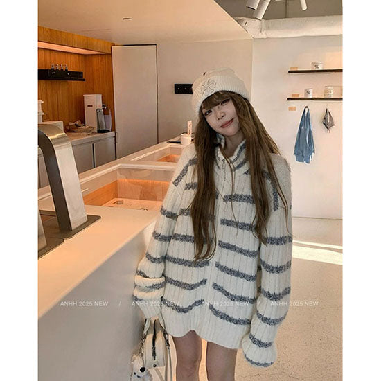LF ボーダーニットプルオーバー ゆったりシルエット 柔らか素材 暖かい 可愛い カジュアルコーデ