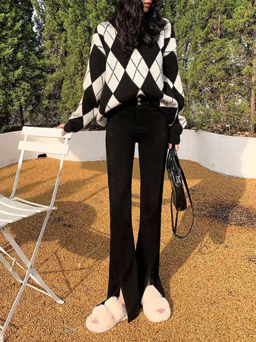 XYW ハイウエストストレッチフレアデニムパンツ 脚長効果 スリムのコピー