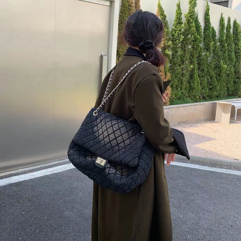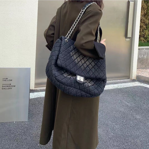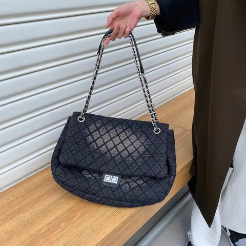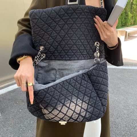 XYWデニム生地 チェーン 大容量トートバッグ ショルダーバッグ
