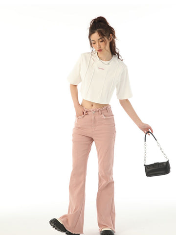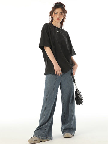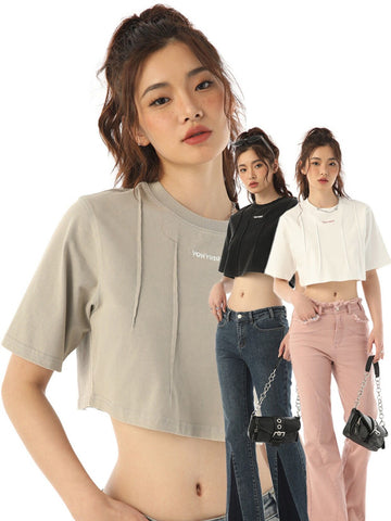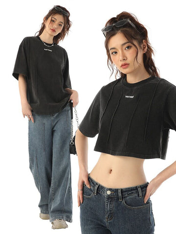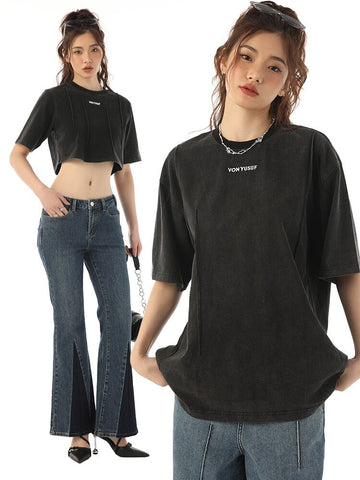 XYW オリジナルデザイン 半袖Tシャツ ショート/ロング トップス 全3色 ギャル ストリートコーデ