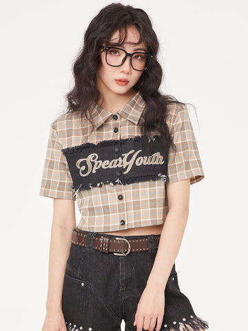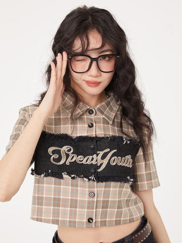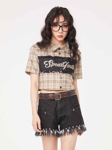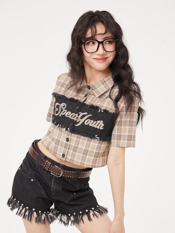 XYW 予約 デニムデザイン ゆったり チェック柄 ショートタイプ 半袖 シャツ