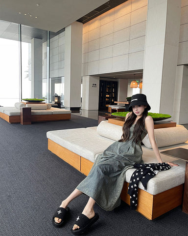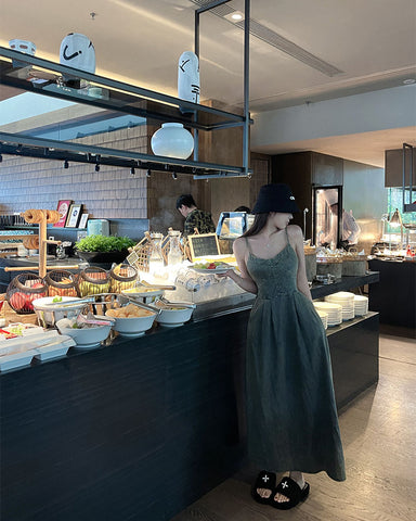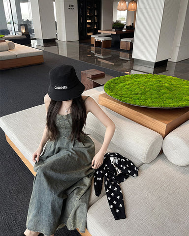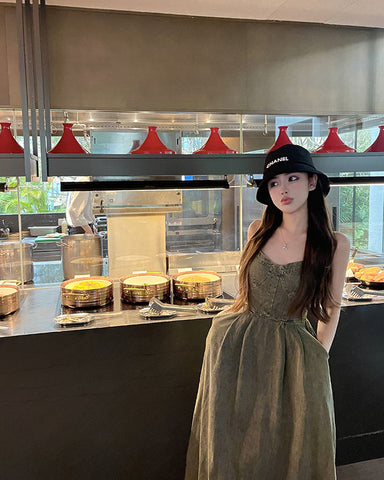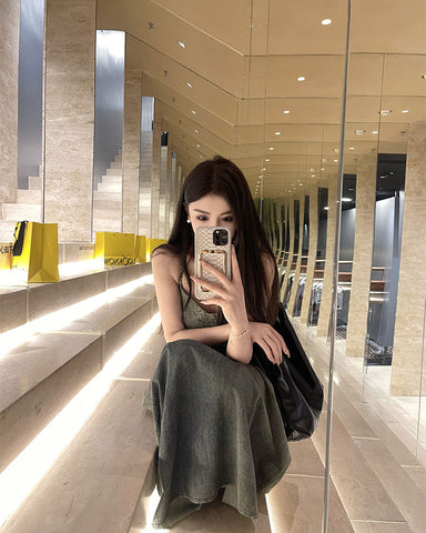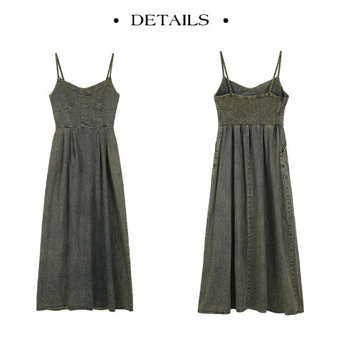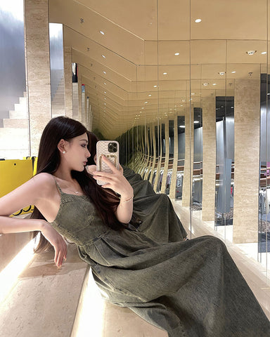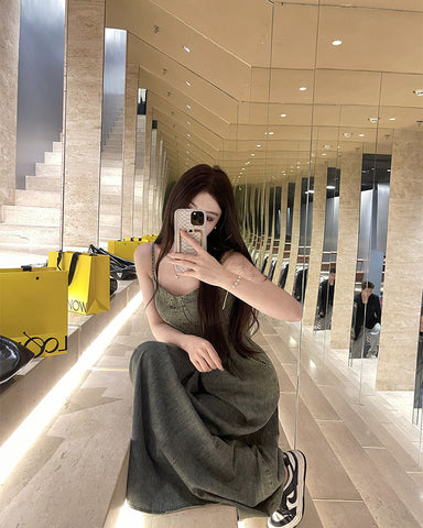 XYW レトロ デニムワンピース キャミワンピ かっこかわいい 着やせ