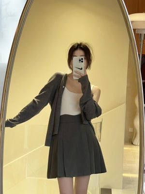 XYW 予約 秋冬厚手 グレーa字スカートハイウエスト着痩せ学生プリーツスカート 全4色