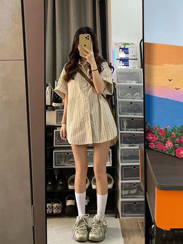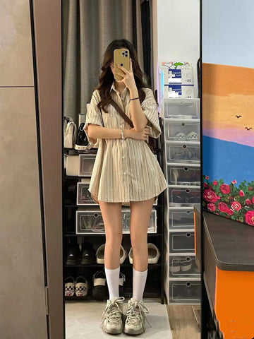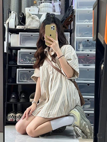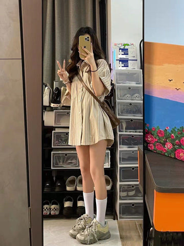 XYW 春夏新作 レトロ ストライプ柄 シャツ かっこかわいい