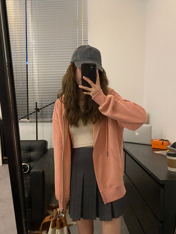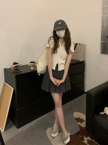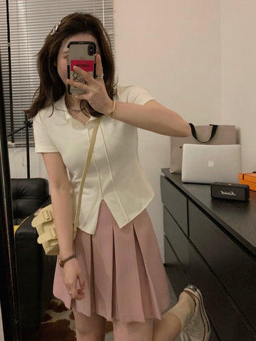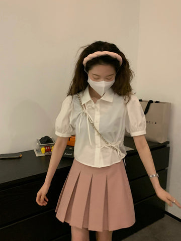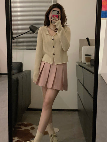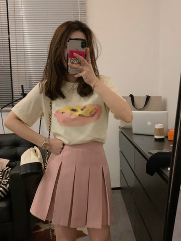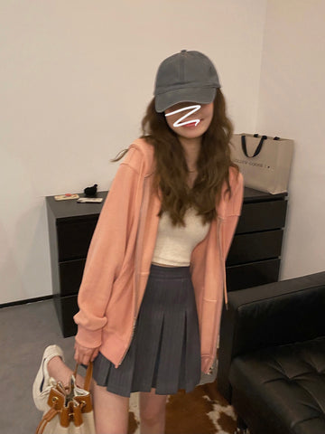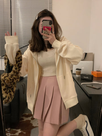 XYW 予約 2023春新作 ハイウエスト プリーツスカート 着やせ 学生 ピンク/グレー