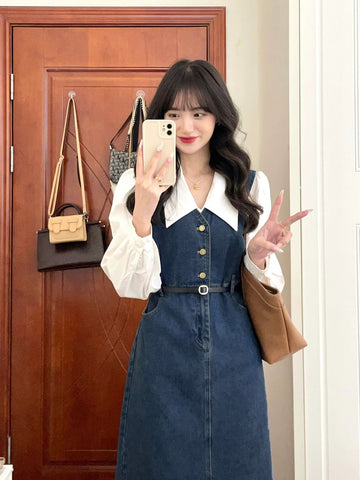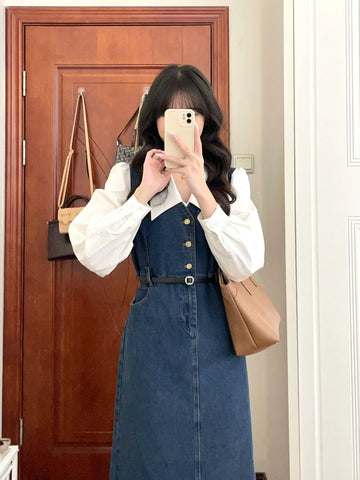 XYW 2023春新作 着やせ ファッション シャツ + デニムワンピース + ベルト