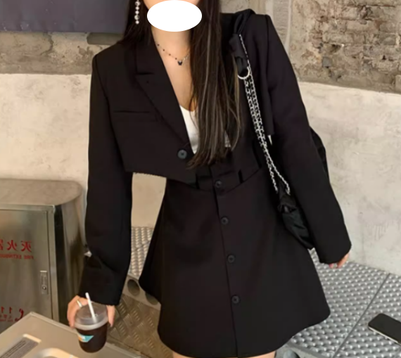 ブラック ビッグサイズ ジャケット上着ハイウエスト フィッシュボーンスカートスカート 一式(X8)