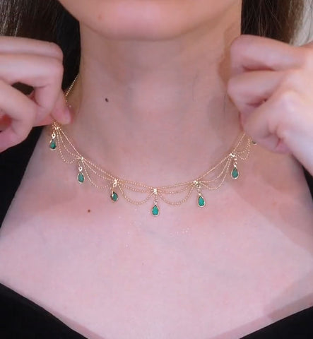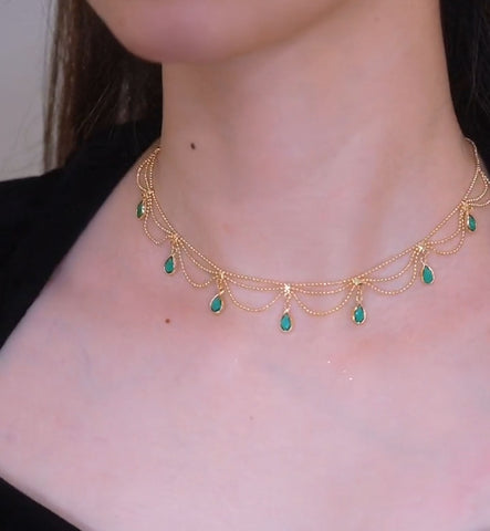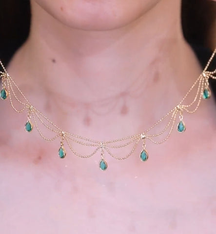 前壳 XYW 敦煌の舞 ネックレス グリーン&ゴールド