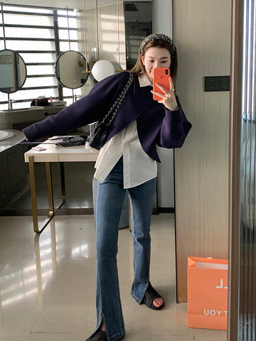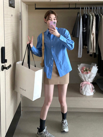 前壳 XYW ゆったり カジュアル 無地長袖シャツ