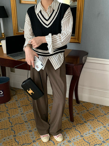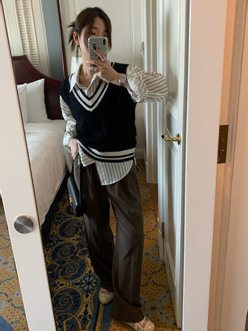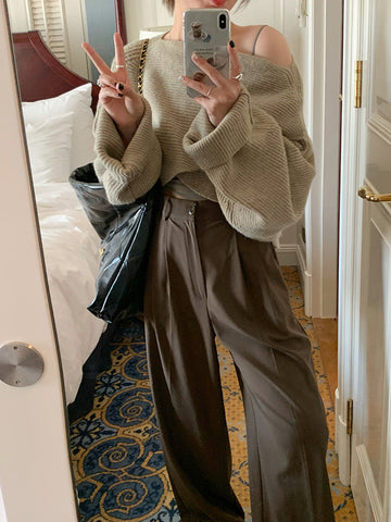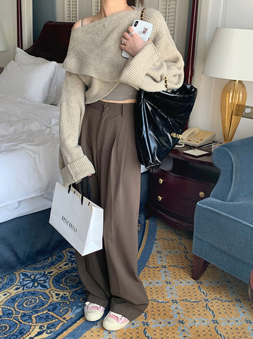 前壳 XYW 秋冬新作 コーヒー色 スーツパンツ ストレートパンツ ワイドパンツ