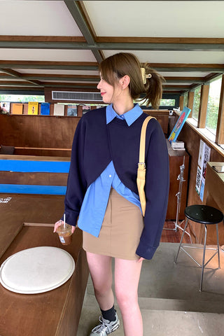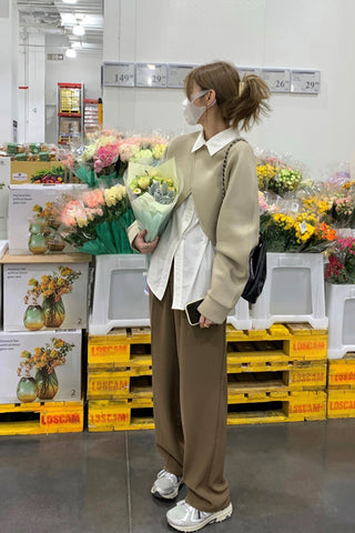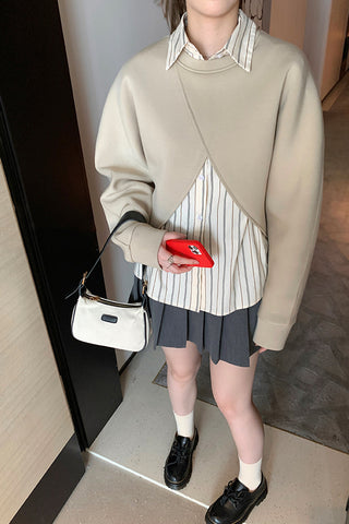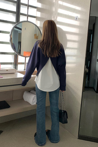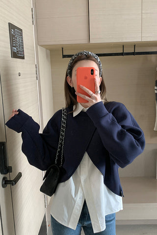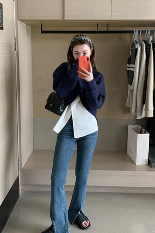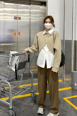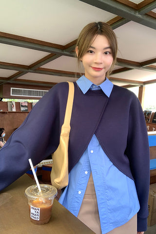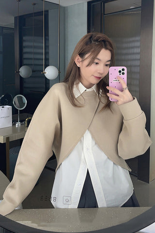 前壳 XYW 秋新作 ラウンドネック スリット クロス 長袖トレーナー