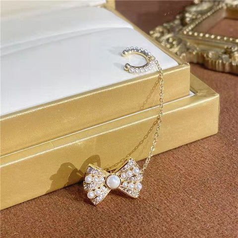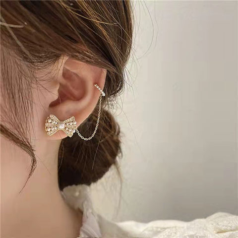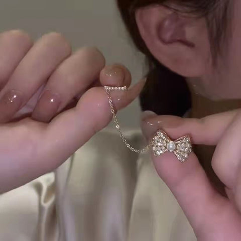 LF きらきら パール リボン ピアス イヤリング