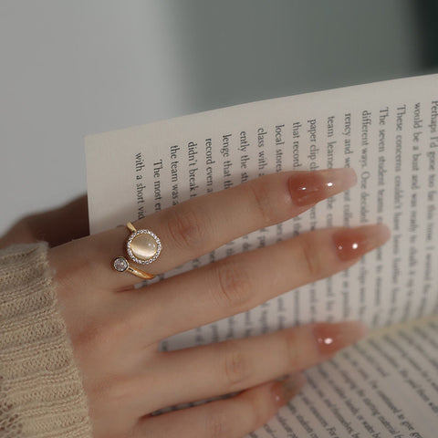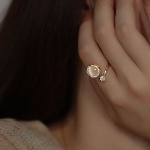 XYW 回転式 キャッツアイストーン オープンリング & ネックレス エレガント