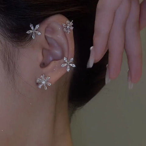 LF 回転 ヤーフック 雪 スノーフレーク イヤリング