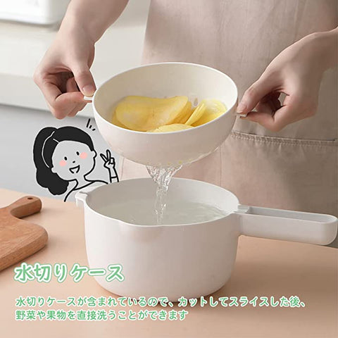 - 【浸して漏れない・カットして洗う可能】本製品は水切りケースとドレンバスケットが付くので、野菜を切った後、直接水洗いしてろ過ができ、操作が簡単で時間を節約できます。スライサーもドレンバスケットになれ、スライスされた食材をそのままに保存できます。