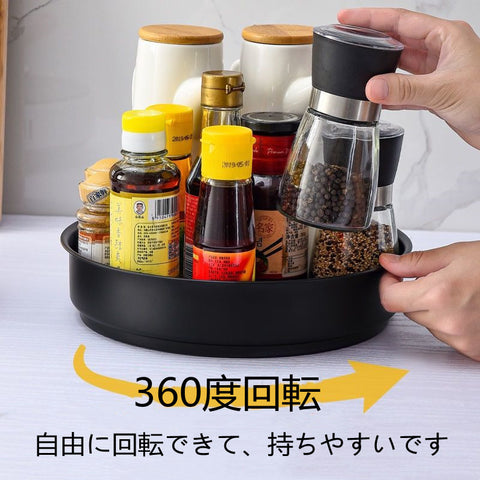 ZHH 調味料の机の収納皿は360度回転できます デスクトップ収納ボックス 収納盤 台所用品 ステンレス鋼