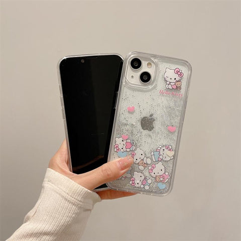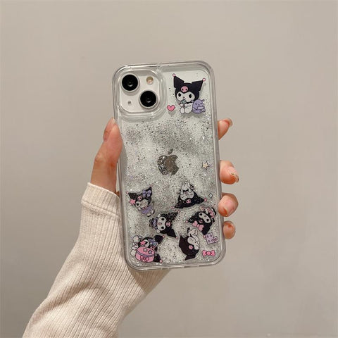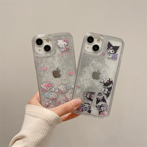 LF クロミ&キティ キラキラ流れるグリッターケース スマホケース 携帯電話ケース