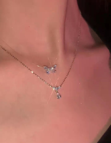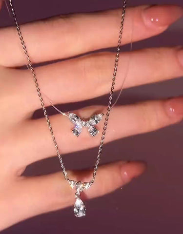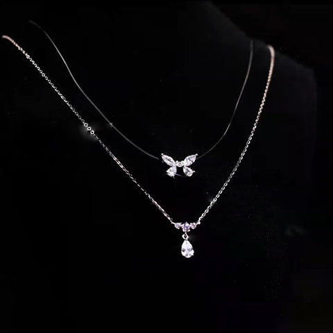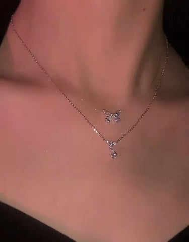 LF バタフライ&ウォータードロップ ダブルレイヤー・ネックレス エレガント 2連ネックレス