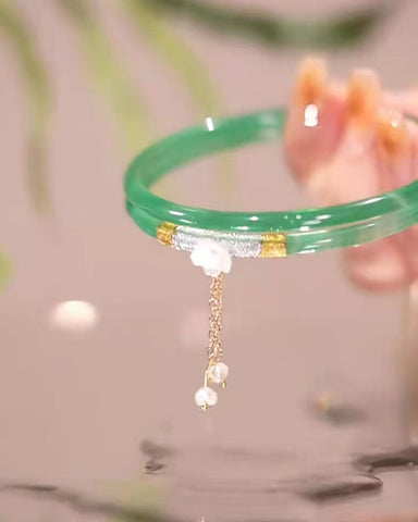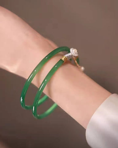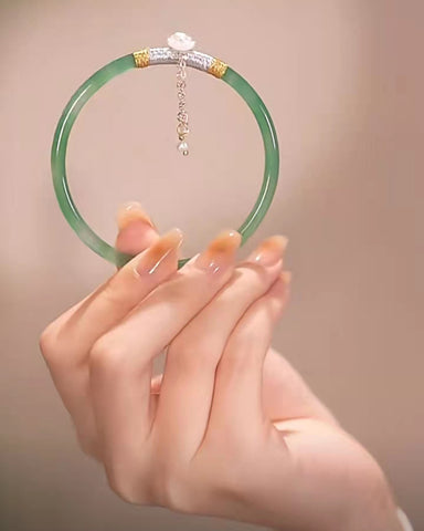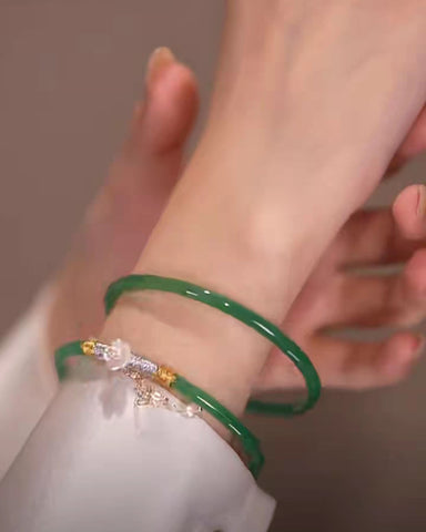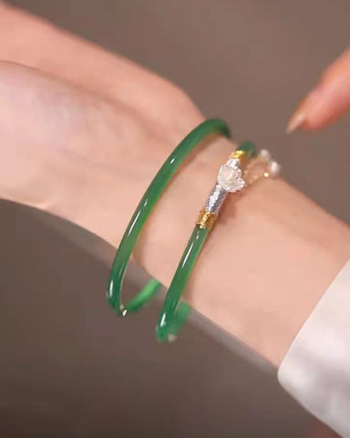 LF 優しそうで上品 アゲートブレスレット エメラルドグリーン フラワー エレガント