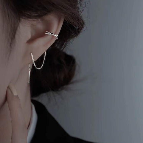 YQQ イヤボーンクリップ ロングタッセルピアス かっこかわいい