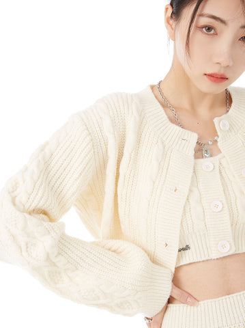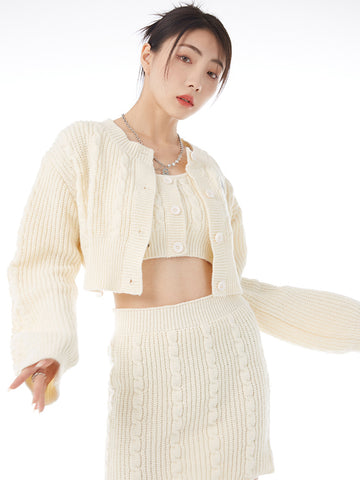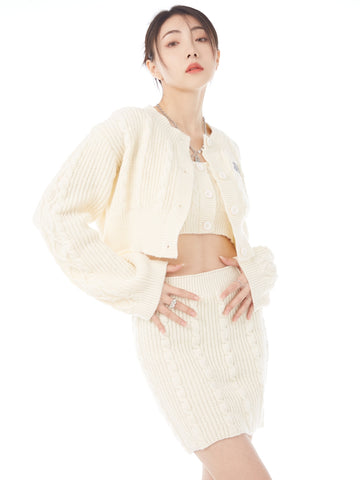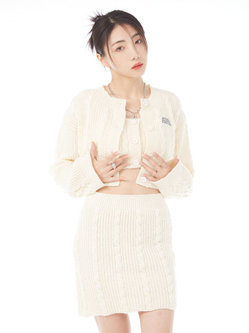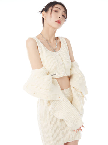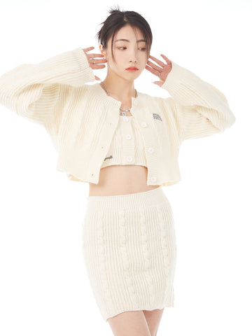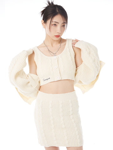 XYW ギャル ニットセット タンクトップ+コート+ショートスカート