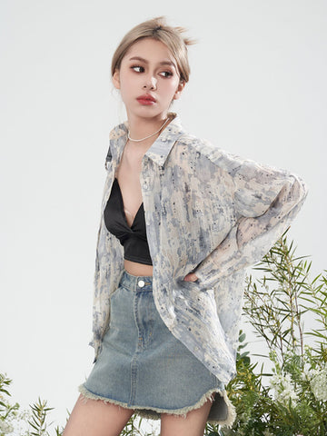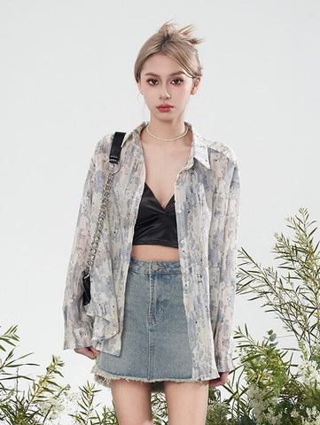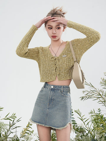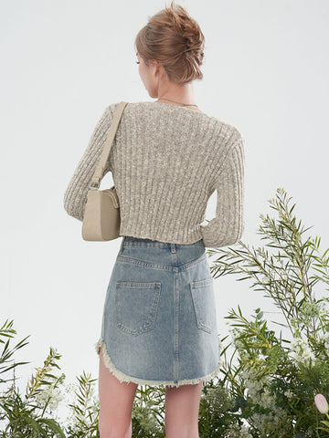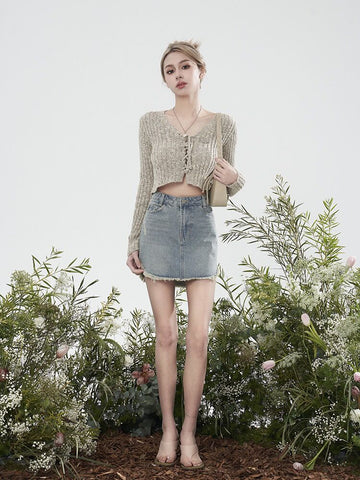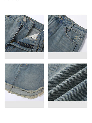 XYW ハイウエスト フリンジ デニムスカート ミニスカート ギャル