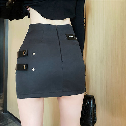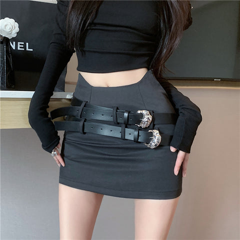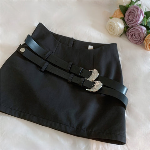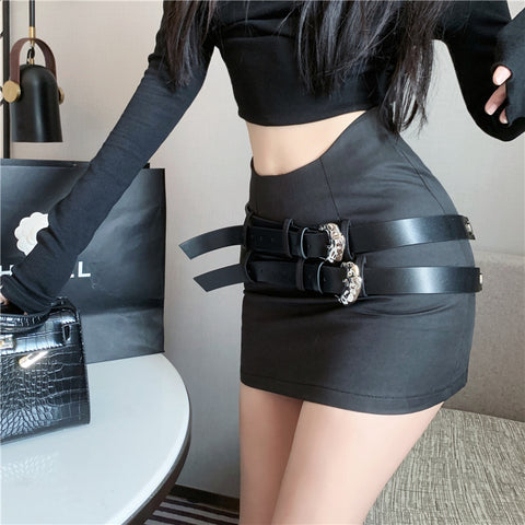 XYW ベルトデザイン ハイウエスト ブラックスカート ミニスカート 着やせ ギャル 純欲風