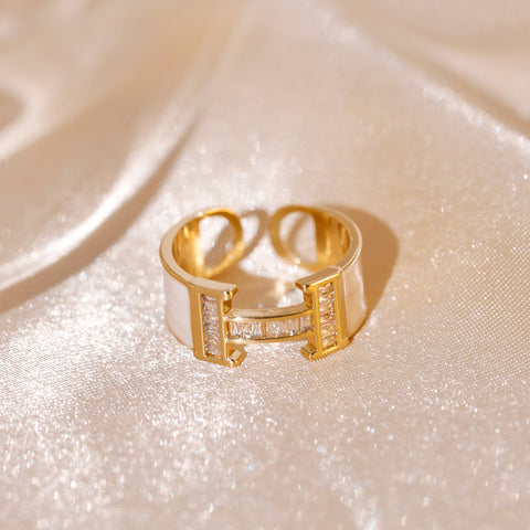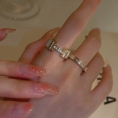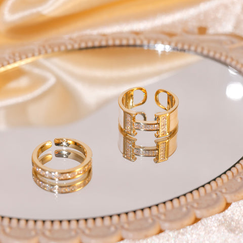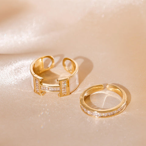 XYW 新作 H型ジルコンリング 大きさを調節できる指輪 セット