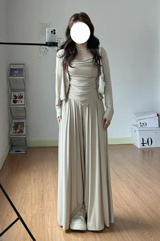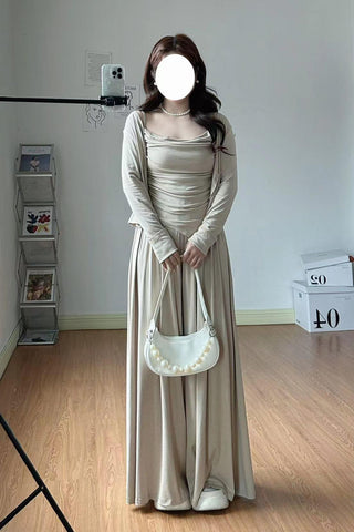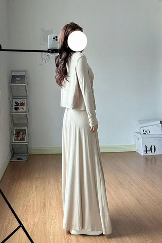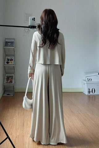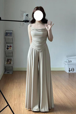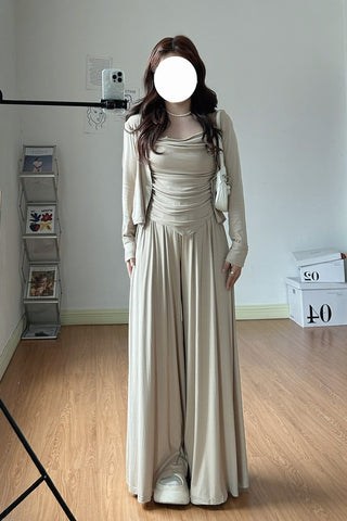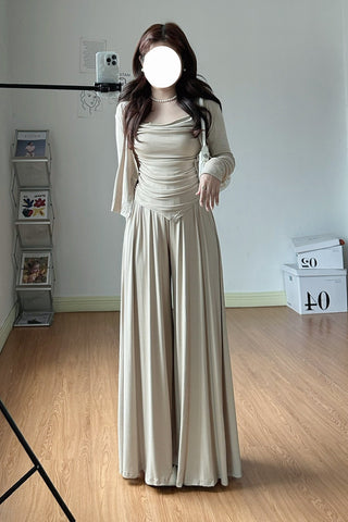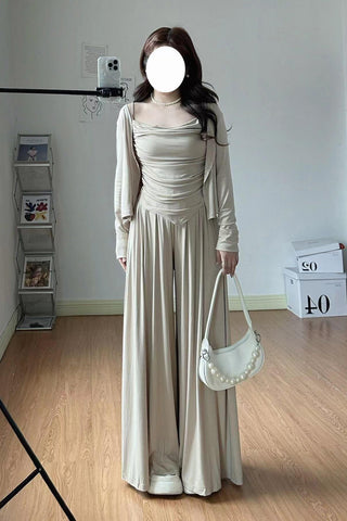 XYW 秋新作 カジュアル カーキ カーディガン + キャミソール + ワイドパンツ セット
