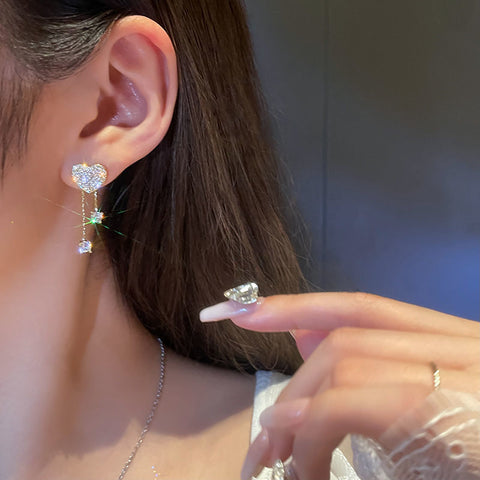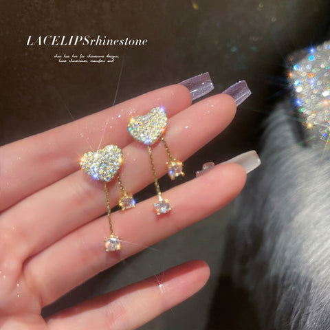 YQQ ハートピアス イヤリング タッセル ロングピアス