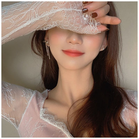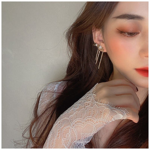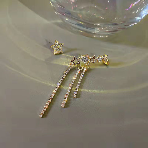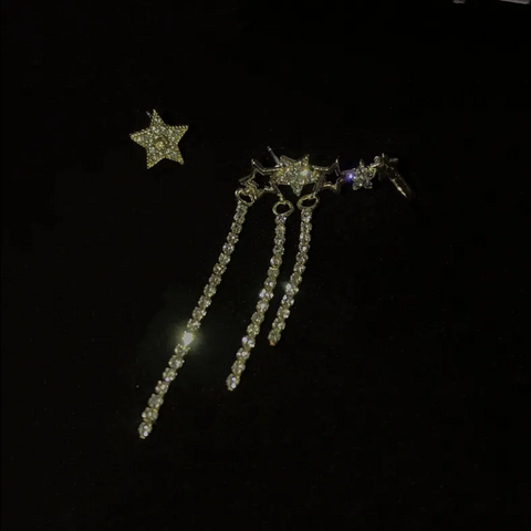 YQQ ペンタグラム タッセル ロングピアス アシンメトリー イヤリング