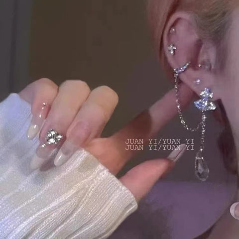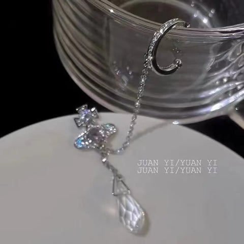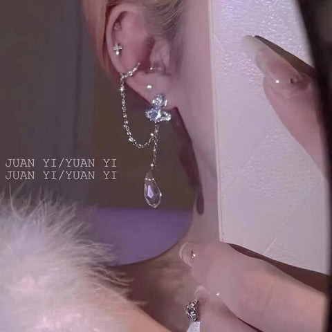 YQQ 水滴ジルコニウム石流蘇耳骨挟み一体イヤリング
